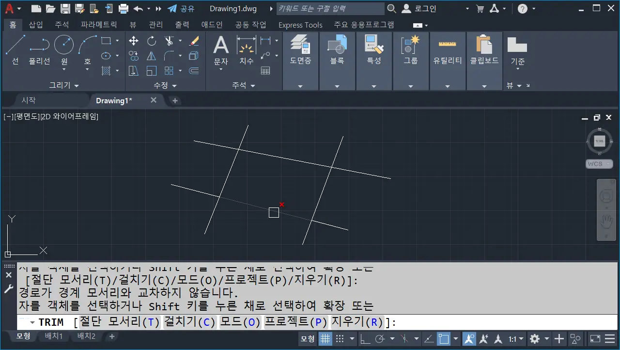 오토캐드 활용 팁 - Trim(트림), 선택 자르기 설정 - 버전 2021이상