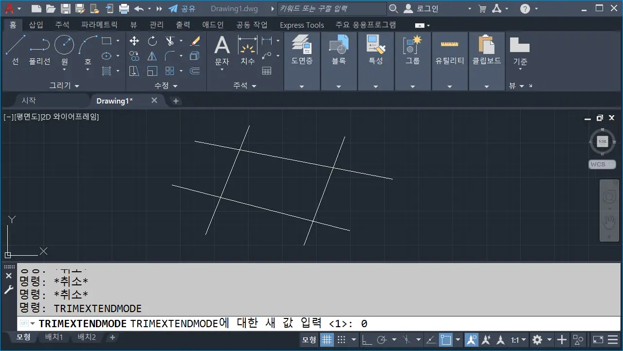 이렇게 2021부터 바꿔진 `자르기(trim)` 및 `연장하기(Extend)`의 기준 객체 선택을 2021 이전 버전처럼 사용자가 직접 선택하는 방법에 대해서 간단하게 알아보자.